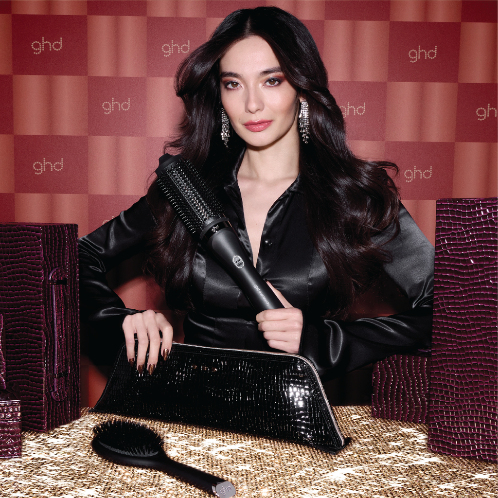 Accompanied by the ghd the dresser oval dressing brush, crafted with anti-static nylon bristles to polish and perfect your finished look, and a heat-resistant bag and mat² for safe storage and travel, this gift set is the ultimate blend of professional performance, everyday ease, and festive luxury.