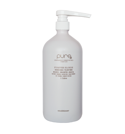 Experience Pure Forever Blonde Conditioner—a revitalising formula that strengthens, boosts shine, and rejuvenates blonde hair, ensuring it remains vibrant and free from unwanted tones. Pure Forever Blonde Conditioner harnesses the power of Pure's exclusive ‘Pure Complex’™, featuring certified 100% organic extracts, to repair and combat unwanted gold/yellow tones in all shades of blonde hair. Sulfate, paraben, gluten free. UV, Thermal and Humidity defense.